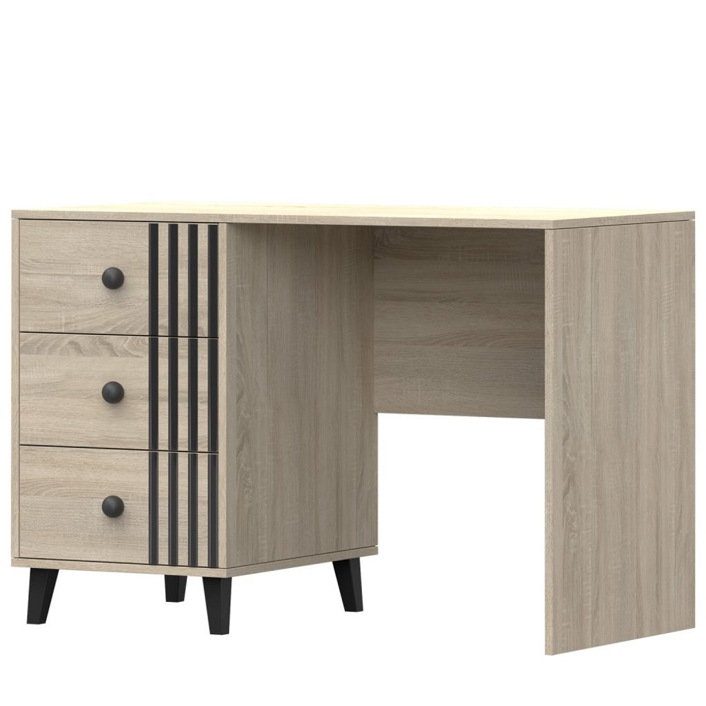 Psací stůl FOX kombinuje moderní skandinávský styl s funkčností. Tento praktický kus nábytku disponuje třemi zásuvkami pro další úložný prostor. Jeho světlé zbarvení s tmavými pruhy přidává kouzlo a unikátní vzhled celému interiéru. Doplňkový nábytek systému Figo umožňuje vytvořit libovolnou sestavu přizpůsobitelnou potřebám a velikosti dětského nebo teenagerského pokoje.