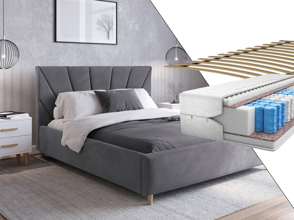 Přemýšlíme nejen o estetice, ale také o praktičnosti. Proto jsme do postele Sandy začlenili šikovný a především spolehlivý rám. Tato čalouněná postel obsahuje pružný rošt dělený na dvě části, který spočívá na pevném dřevěném podkladu. Sestává z 34 pružinových březových lamel (17 na každé straně postele), což zajišťuje optimální podporu pro váš spánek. Flexibilní rám s lamelami se přizpůsobí tvaru vašeho těla, poskytne optimální oporu a eliminuje tlakové body. To zaručuje výjimečné pohodlí při spánku a umožňuje vám plně relaxovat.
