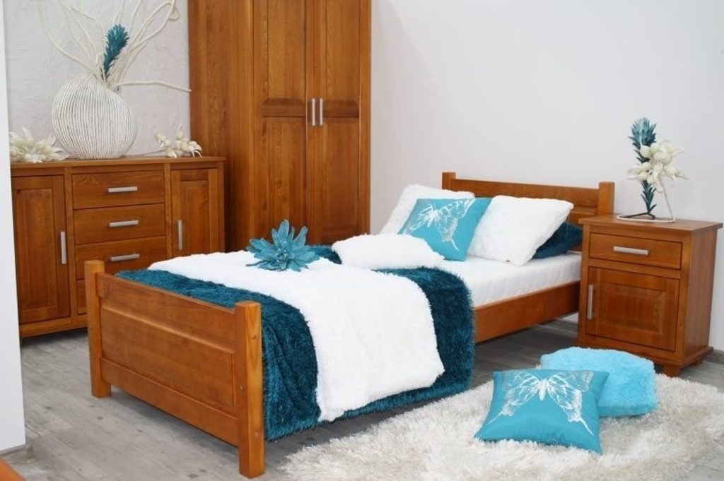 Je vyrobena z masivního borovicového dřeva o tloušťce 2,8 cm, díky kterému je velmi stabilní. Postel je opatřena dvojitou vrstvou ekologického laku. Nohy postele jsou o rozměrech 5,5 x 5,5 cm. Postel lze snadno zkombinovat i s dalším ložnicovým vybavením. V naší nabídce naleznete noční stolky, nebo šuplíky ve stejném barevném provedení.