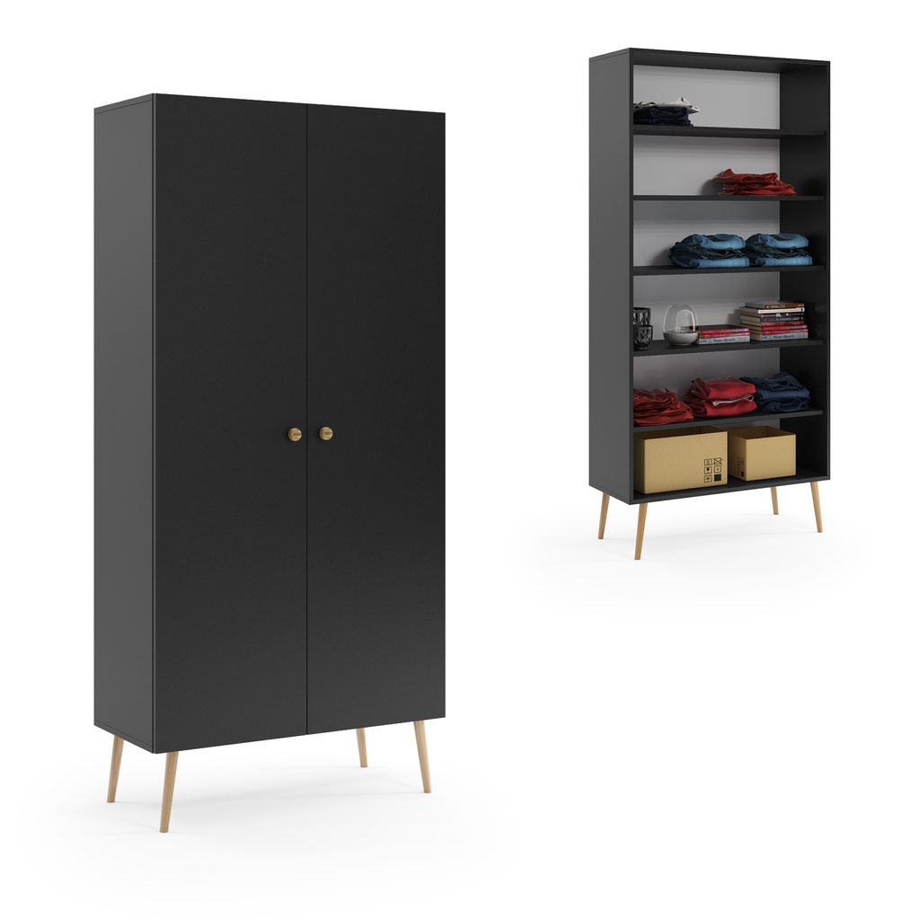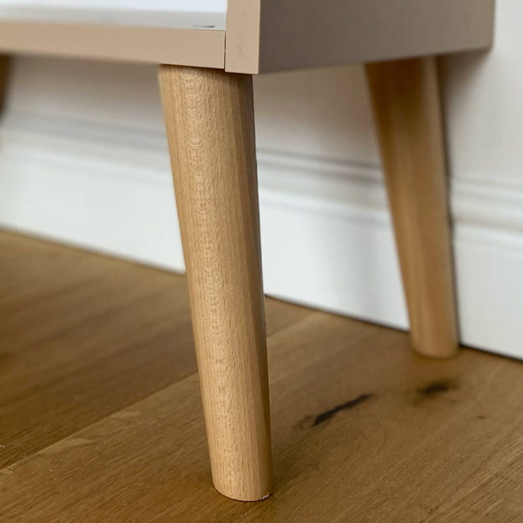 Nohy vyrobené z masivního bukového dřeva zajišťují pevnost a jsou příjemným přírodním prvek do vašeho interiéru. Dvě dvířka skrývají prostorný interiér pro organizované uložení vašich šatů, doplňků a dalších osobních věcí.