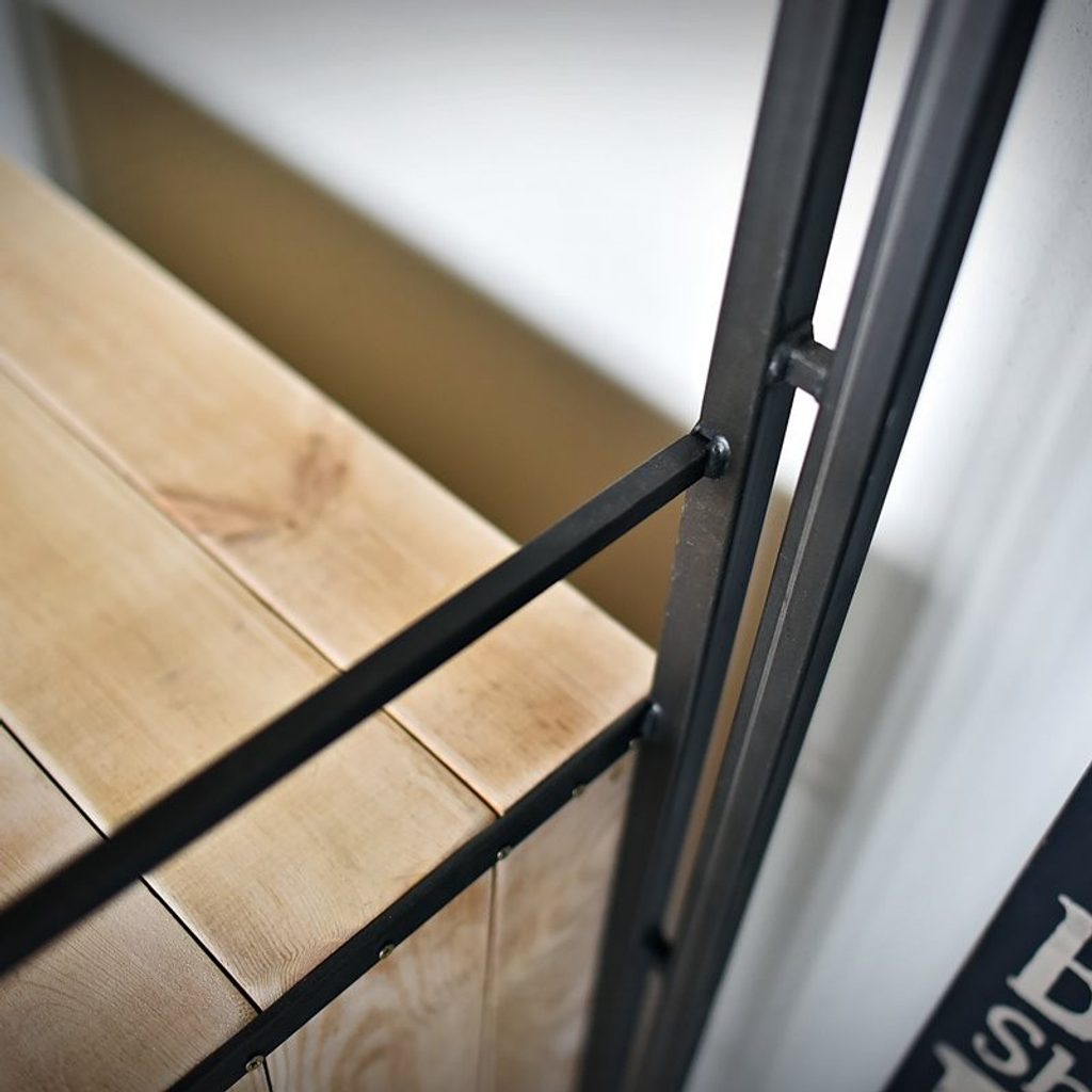 Nábytek se vyznačuje originální ocelovou konstrukcí vyrobenou ze dvou profilů 20x20 mm. Design z této kolekce narušuje konvenční styl nábytku vyrobeného výhradně ze dřeva pomocí oceli. Dřevěné prvky jsou vyrobeny z borového dřeva. Díky ručnímu broušení dřevěných prvků je produkt plně funkční, ale zároveň není zbaven přirozené struktury.