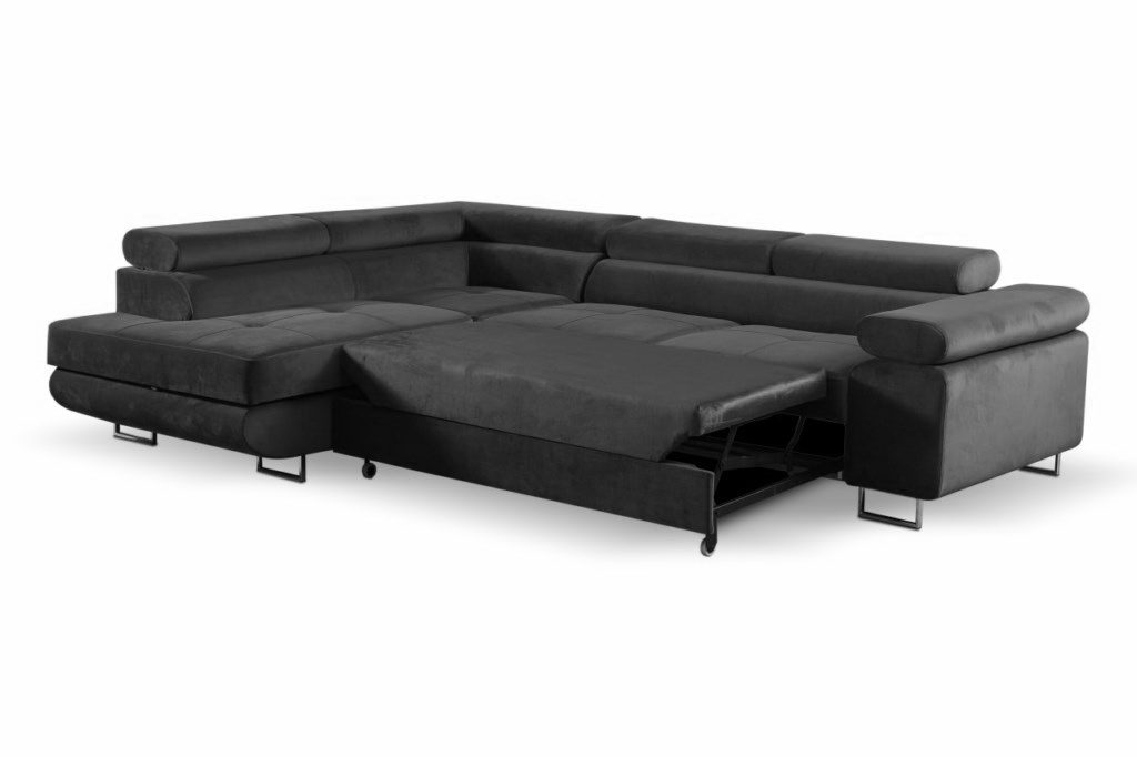 Rohová sedačka ANTOŚ je navržena s důrazem na maximální praktičnost a pohodlí. Kromě prostorného úložného prostoru, ideálního pro uschování ložního prádla, dek a dalších potřebností, se pyšní také elegantními chromovými nohami, které přidávají na moderním vzhledu a stabilitě. Tyto detaily nejenže zvyšují celkovou estetiku pohovky, ale také usnadňují údržbu, jelikož vyvýšené nohy umožňují snadný přístup k podlaze při úklidu.