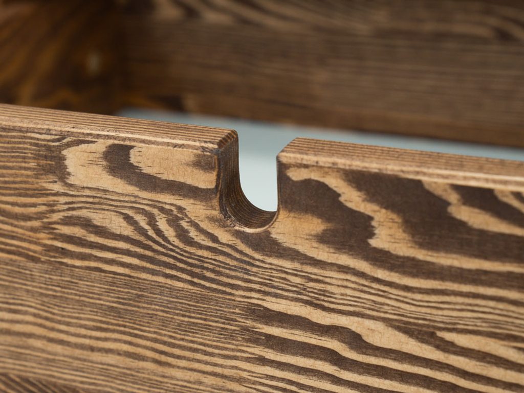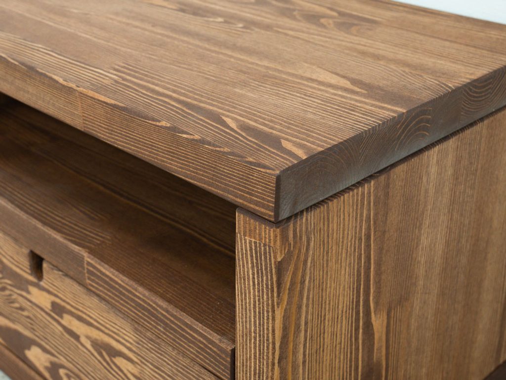 Jedinečnou charakteristikou tohoto nábytku je přírodní kresba, která je viditelná na všech částech. Borovicové dřevo přináší zajímavou strukturu na čelech zásuvek a v rámci konstrukce. Speciální úpravy ještě více zvýrazňují kontrasty mezi odstíny a barevnými změnami.
