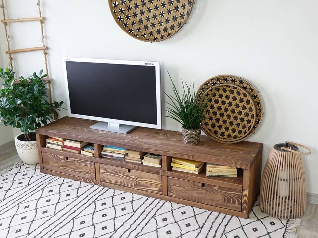Pro ty, kteří preferují moderní industriální styl ve svých bytech, máme skvělý tip - TV stolek Marika 1. Tento nábytek z kolekce Marika je vyroben z borovicového dřeva a nabízí mnoho praktických využití. Skříň byla rozdělena na šest sekcí, z nichž polovina slouží jako úložný prostor se zásuvkami a druhá polovina má otevřené police. Toto funkční řešení výrazně zvyšuje praktičnost tohoto nábytku.