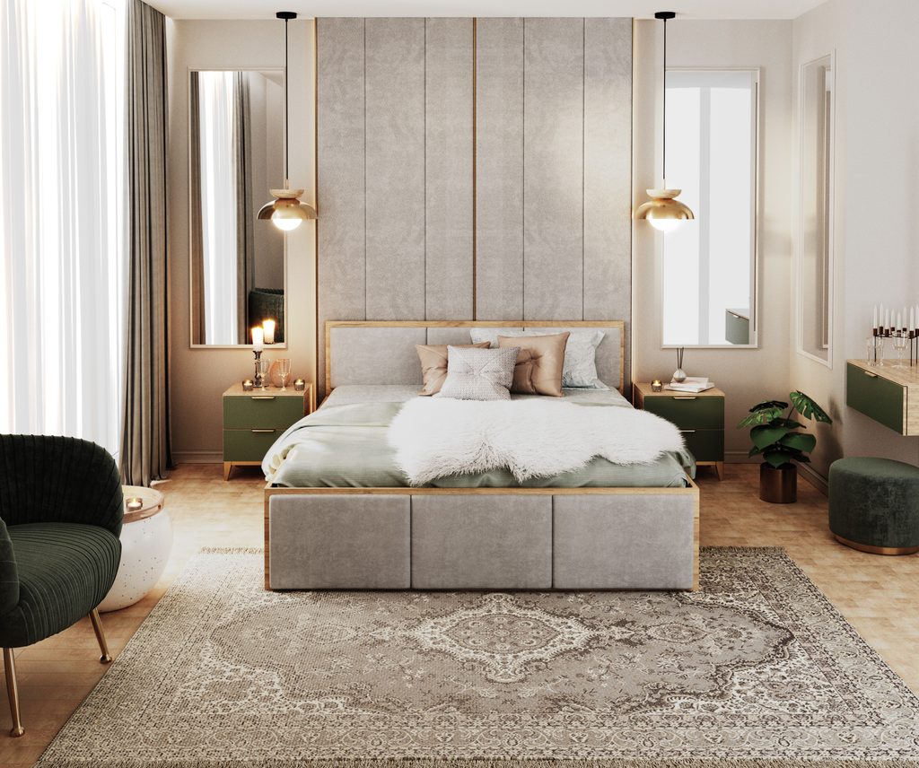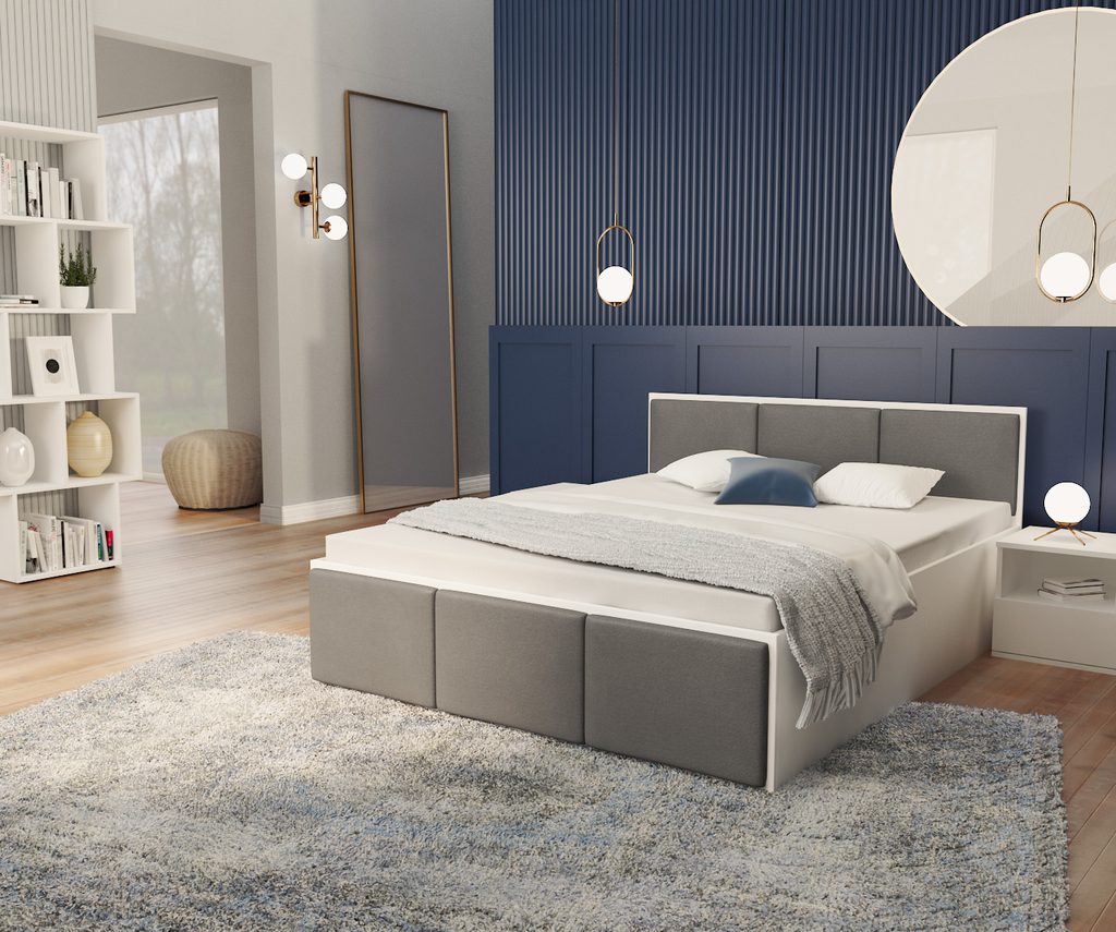 Čalounění dodává ložnici příjemnou atmosféru a podporuje komfort – opření o měkké čelo je ideální pro čtení nebo odpočinek. Korpus postele je vyroben z kvalitní nábytkové desky, která zajišťuje pevnost, stabilitu a dlouhou životnost.