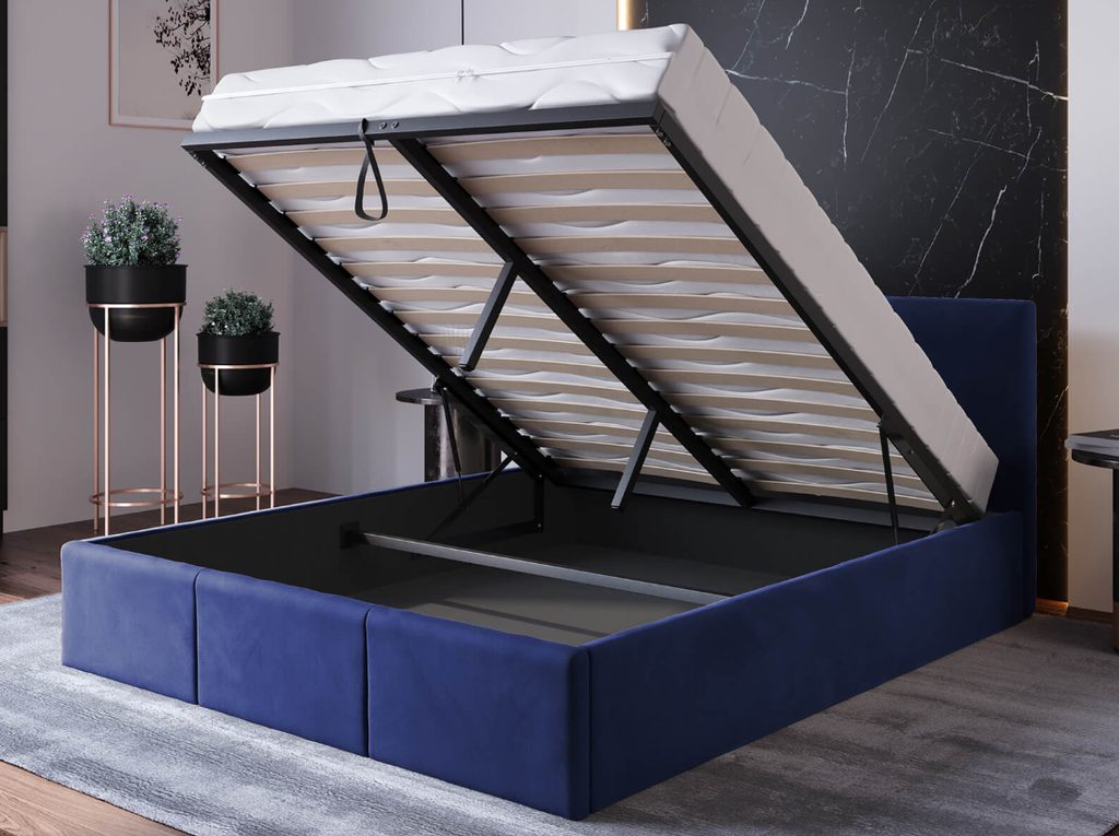 - Výklopný úložný prostor pro snadný přístup k prostoru pod postelí