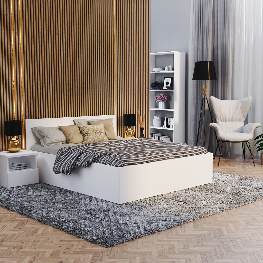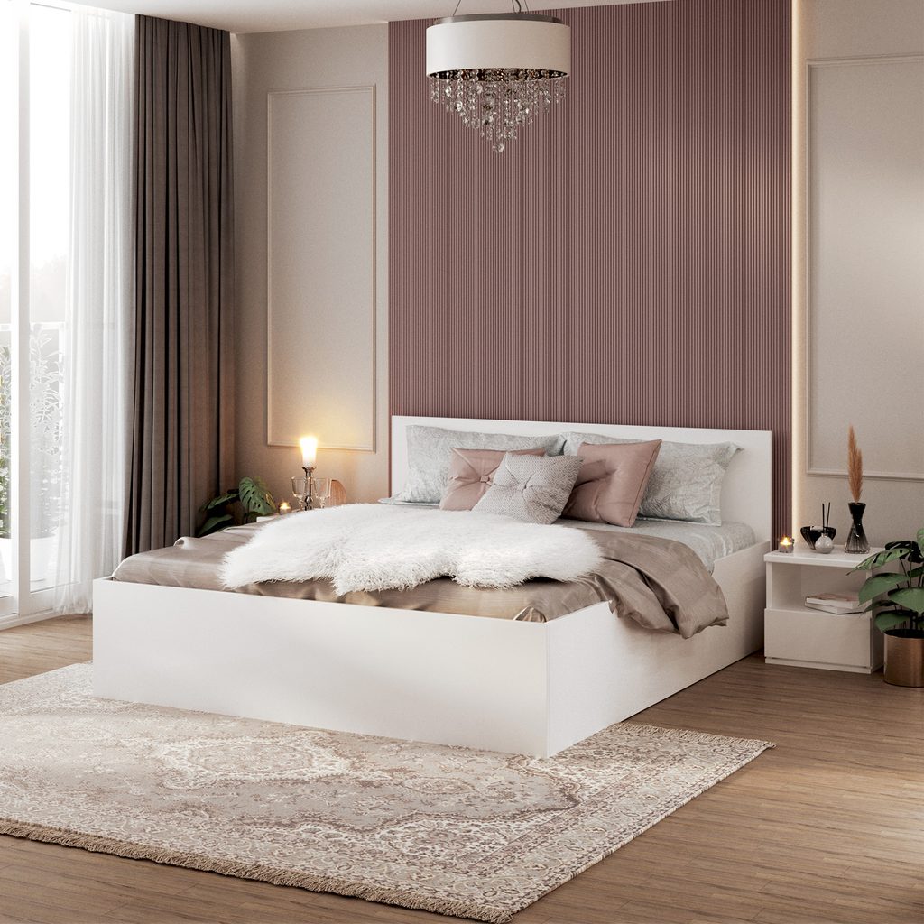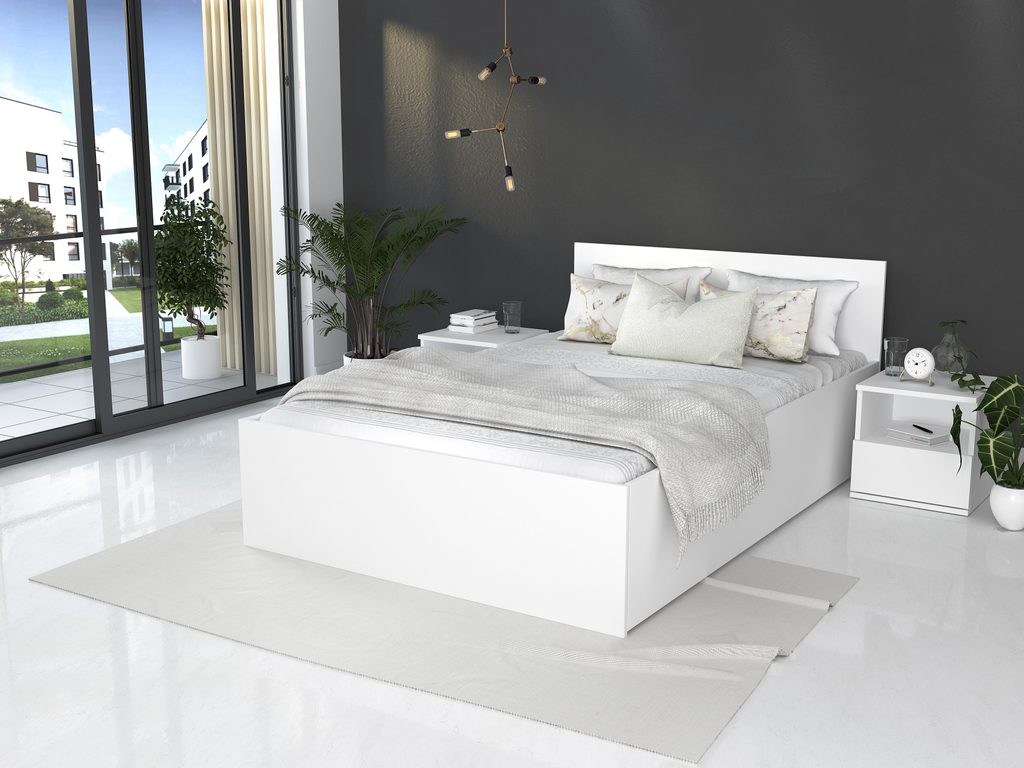 Konstrukce je vyrobena z kvalitní nábytkové desky, která posteli zajišťuje pevnost, stabilitu a dlouhou životnost. Spoje jsou řešeny pomocí skrytých mimoosových zámků, díky nimž rám působí elegantně a čistě. Kovové výztuhy zajišťují stabilitu i při každodenním intenzivním používání.