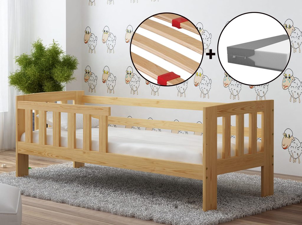 Set dřevěná dětská postel Ala 160x70 se zábranou+matrace + rošt ZDARMA