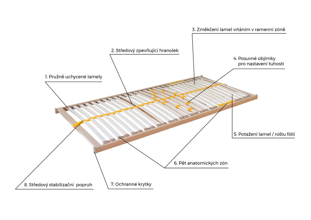 - 5 anatomických zón podporuje ideální rozložení váhy těla na matraci
