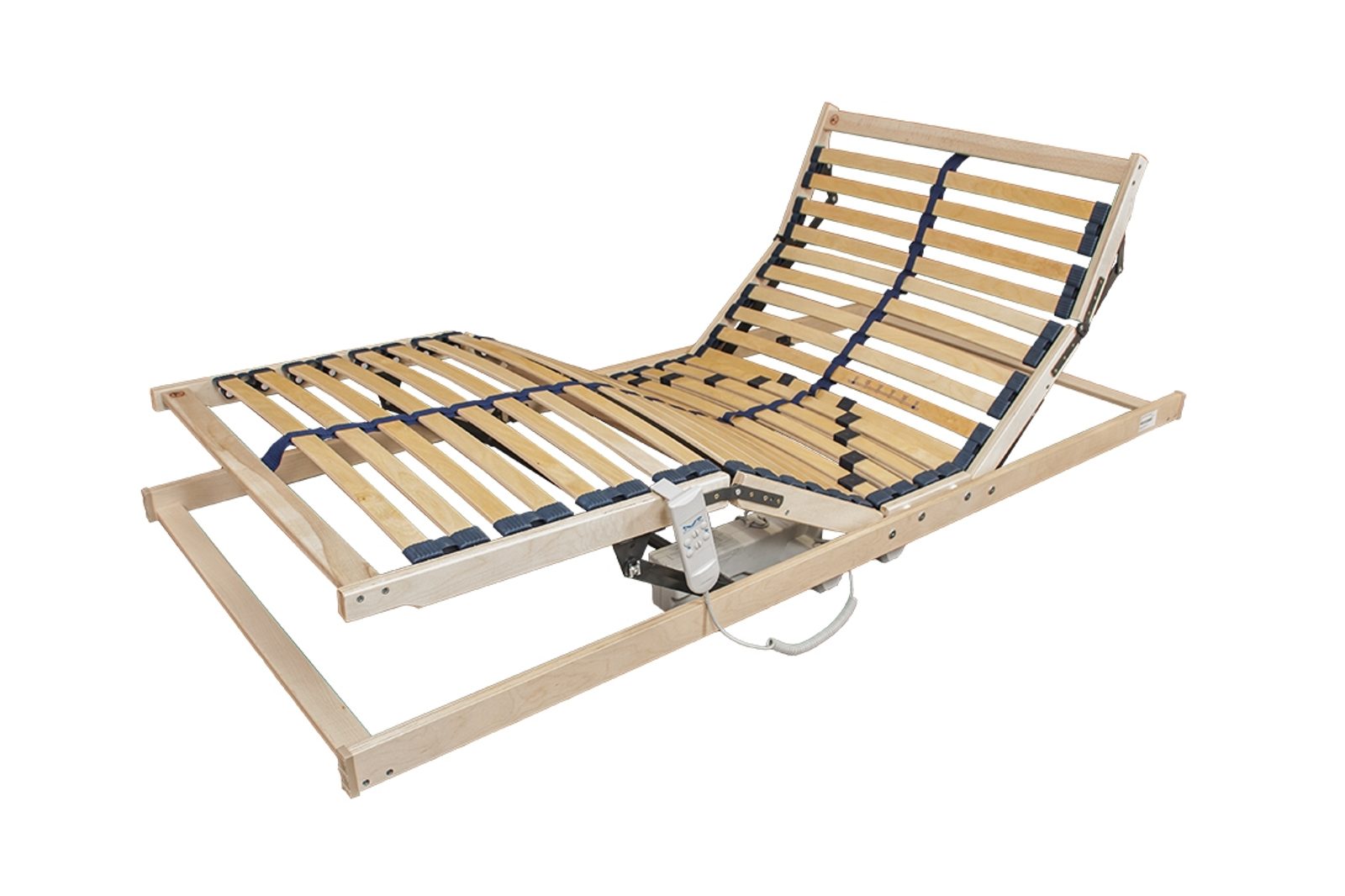 Polohovací lamelový rošt FLEX disponuje 28 březovými lamely, zasazenými v kvalitních kaučukových pouzdrech. Lamelový rošt disponuje elektrickým nastavováním polohy hlavy a nohou, pomocí dálkového ovladače. Díky duálnímu motoru je možné nezávislé nastavení hlavy a nohou. Díky zdvojeným lamelám a posuvným kaučukovým objímkám, lze nastavit tuhost roštu. Středový zpevňující popruh, pak zajišťuje lepší roznášení hmotnosti.
