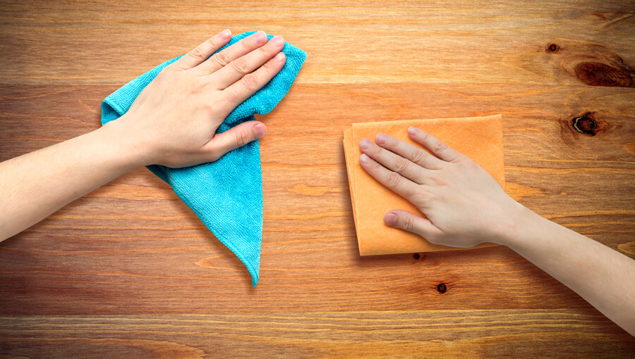 K běžné péči stačí měkký hadřík. Suchý nebo velmi mírně navlhčený. Použít můžete i přípravky k ochraně dřevěného nábytku, které seženete v každé drogerii. Pozor však na nechtěné reakce. Vždy vše zkuste na malém kousku. Předejdete tak poničení celého jednoho kusu. Pozor především u voskované ochranné vrstvy. Na tu je nejlepší nanášet opět vosk. To samé platí o oleji.