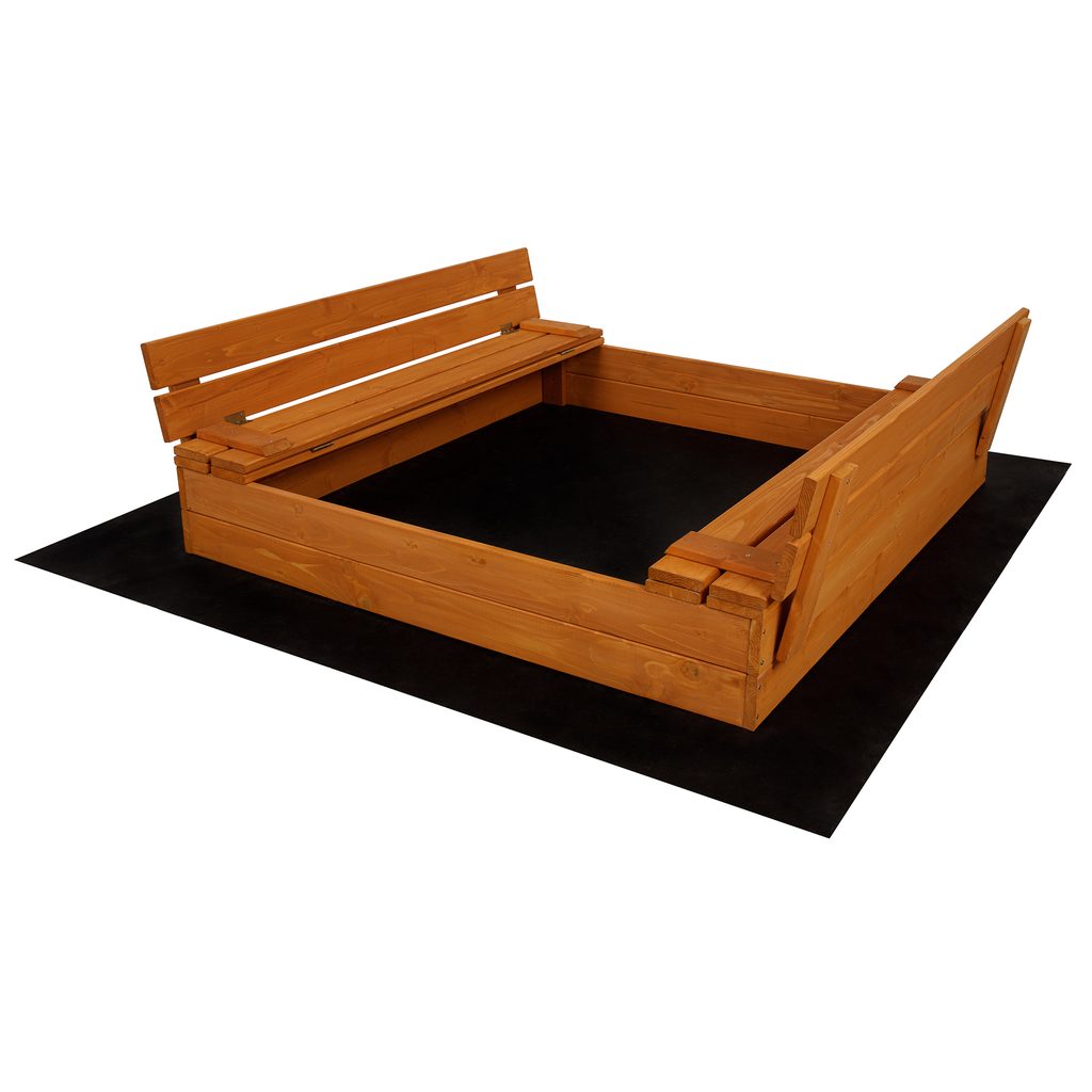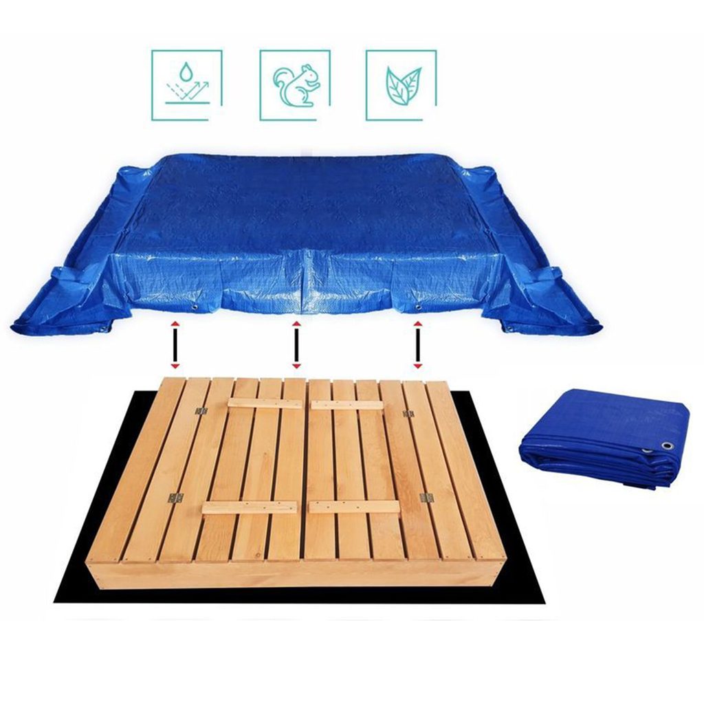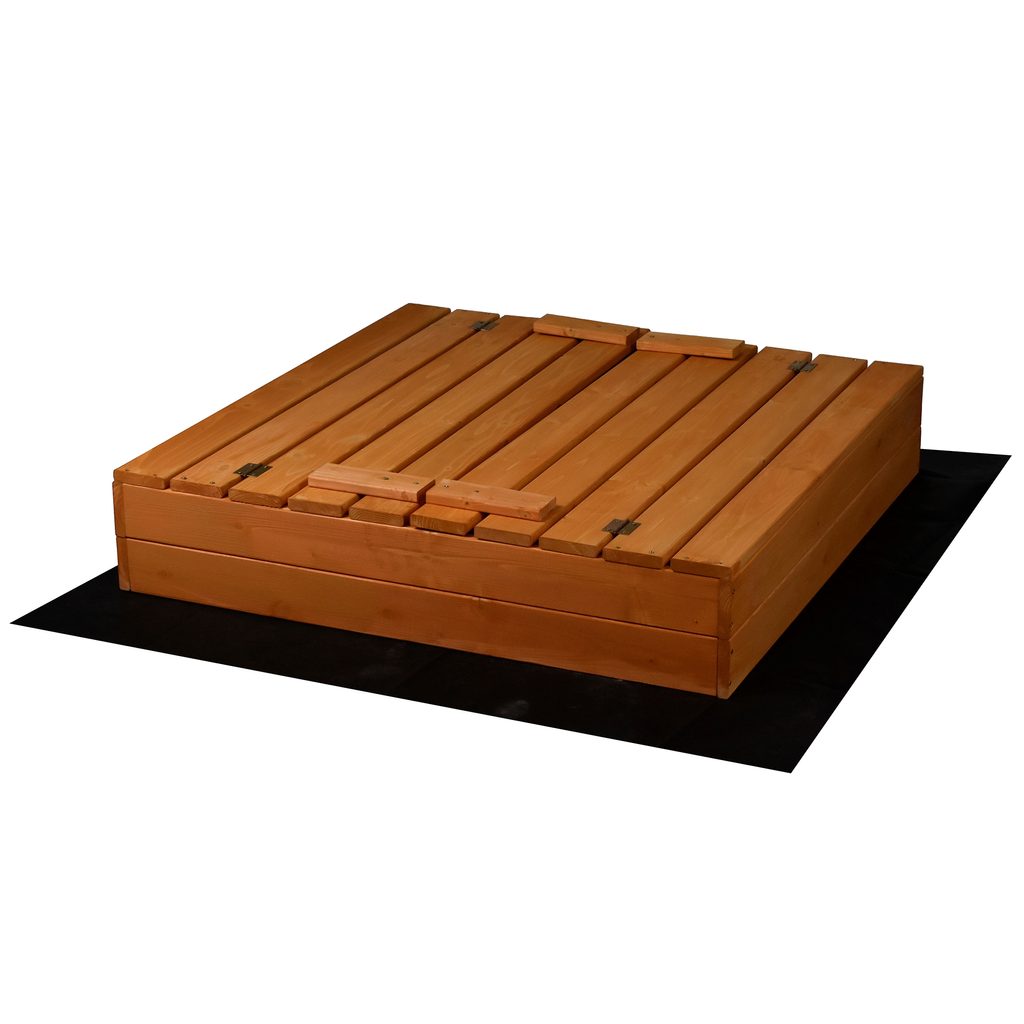 - Součástí balení je dřevěné pískoviště, agrotextilie, plachta a lopatka na pískoviště