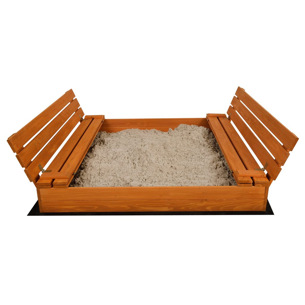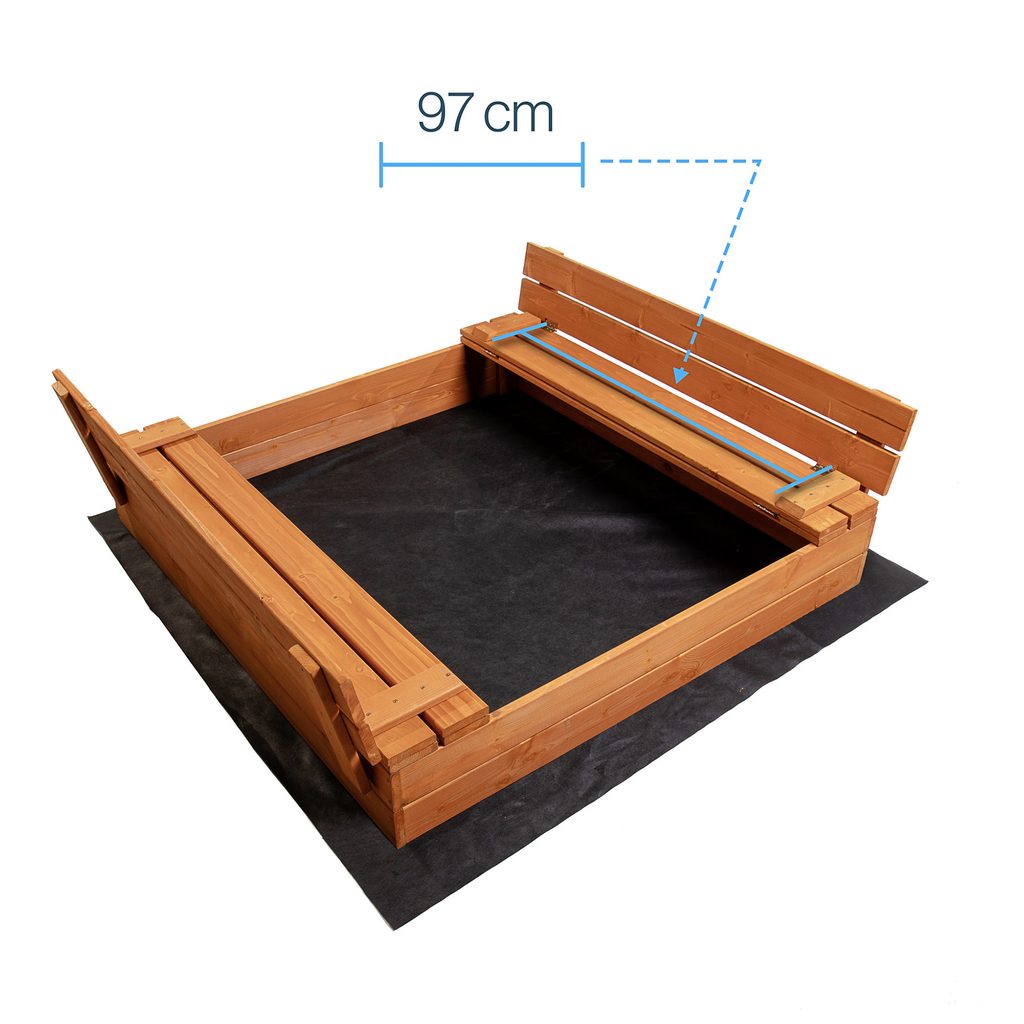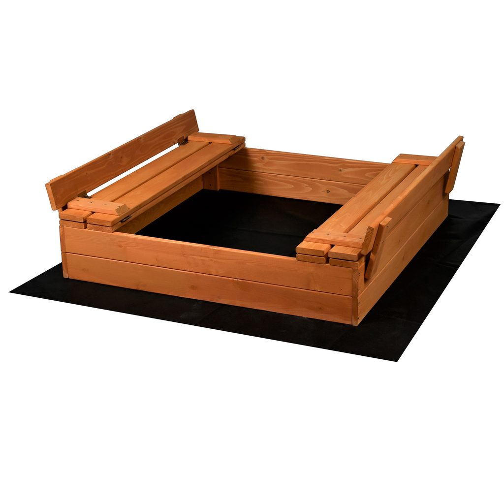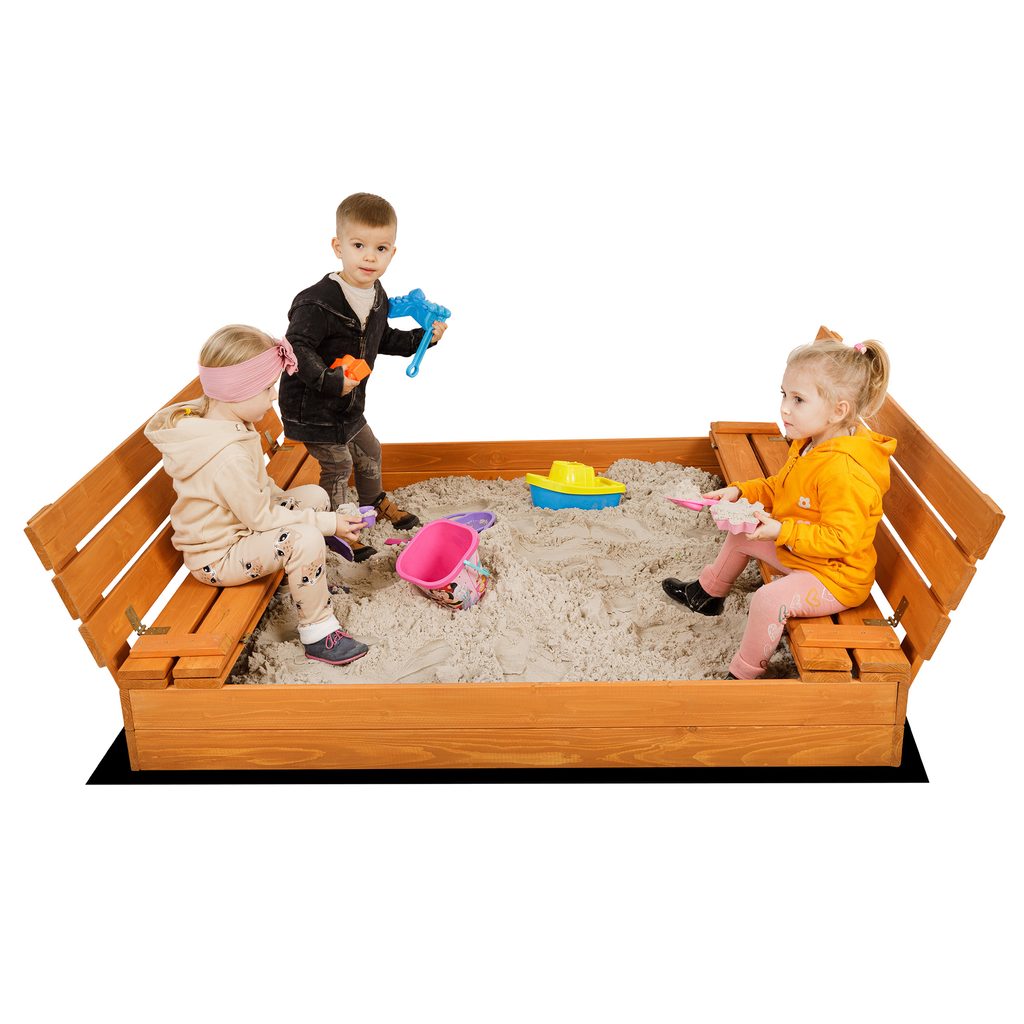 - Součástí balení je dřevěné pískoviště, agrotextilie, plachta a lopatka na pískoviště