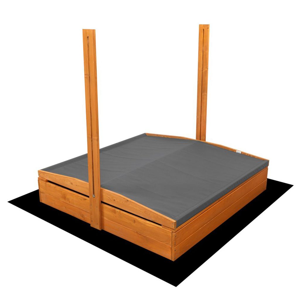Součástí pískoviště je černá agrotextilie, která slouží jako účinná izolace od zeminy. Zabraňuje promíchání písku s hlínou, omezuje prorůstání plevele a výrazně snižuje riziko průniku hmyzu, škůdců nebo žížal. Díky tomu zůstane písek čistý a bezpečný pro dětské hraní.