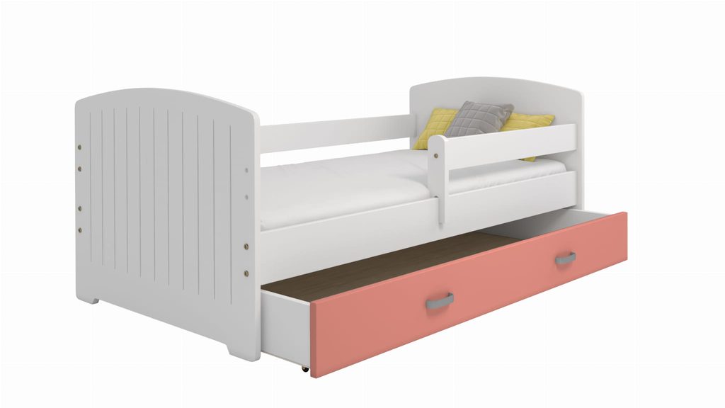 Bezpečná a dekorativní dětská postel Micky 5 v bílé barvě - ideální volba pro každý dětský pokoj! Představujeme vám dětskou postel Micky 5 v bílé barvě, která sjednocuje bezpečnost, pohodlí a stylový design v jednom. S jejím univerzálním provedením a barevným provedením je vhodná jak pro chlapečky, tak pro děvčátka. Tato dřevěná dětská postel je vyrobena z masivního borovicového dřeva, které zajišťuje neuvěřitelnou stabilitu a pevnost. c Montáž je snadná díky jednoduchému sestavení, které vám umožňuje namontovat zábradlí na levou nebo pravou stranu postele podle vašeho výběru. Rám postele je vyroben z hypoalergenního borovicového dřeva a použité ekologické laky prošly důkladným atestem a plně splňují přísné evropské normy pro bezpečnost a kvalitu dětského nábytku. Postel Micky 1 poté také nadchne praktickým a prostorným úložným šuplíkem který nabízí dostatek místa pro uložení oblečení, hraček a dalších předmětů. Díky tomu můžete udržet dětský pokoj čistý a uklizený, zatímco veškeré potřebné věci budou snadno dostupné.